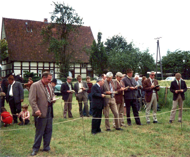 Herr Willi Hellmann links vorne im Bild, auf der Stutenschau in Melle-Nüven am 22. juni 1973.